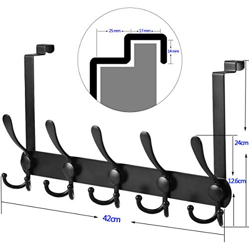 LYLIN Roestvrijstalen deurhangers, deurkapstok, met 15 haken voor de achterkant, zwaar opbergrek voor jassen, kleding…